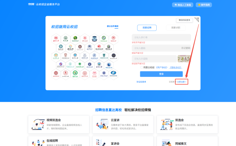 第二步:进入云校招企业服务平台注册,若已注册请直接登录。