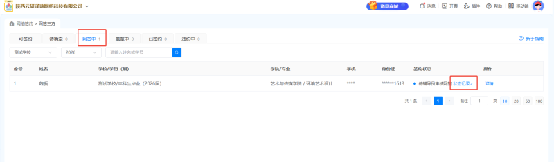 当学生应约后可在【网签中】查看学校审核状态